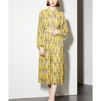 Vestido fluido elegante gran oferta S M L Casual manga larga Puff estampado Floral A-Line vestido nueva moda mujer verano Midi vestido