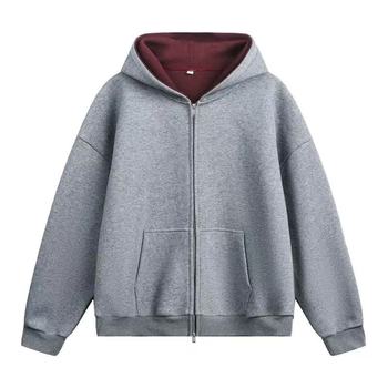 Sweat à capuche à fermeture éclair robuste pour l'automne et l'hiver, manteau à capuche épais rétro de style américain