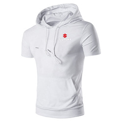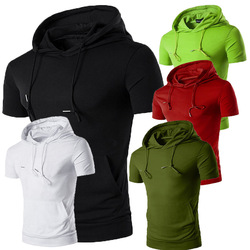 T-shirt à capuche d'été pour homme Loose, marque tendance, manches courtes, style sportif et fitness.