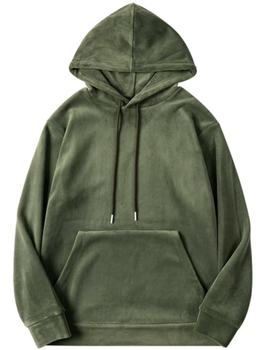 Sweat-shirt à capuche épais en molleton vert olive rétro de style américain, coupe ample et très chaud