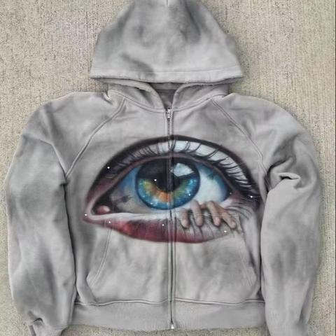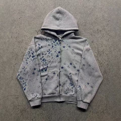 Streetwear personnalisé fermeture éclair éponge française épais recadrée DTG graphique sale lavage à l'acide sweats à capuche zippés pour homme