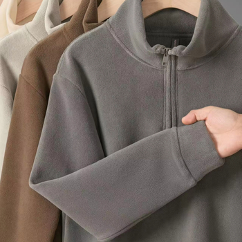 400g Heavyweight Double-sided Oligon Fiber Half-zip Front-neck Pullover Pure Color Loose Fleece Coat