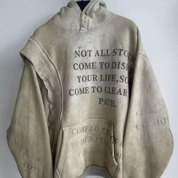 Heavyweight Trendy Personalized Streetwear Design Loose Hooded Shirt with Irregular Distressed Print, Men's Retro Hoodie