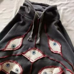 American Street Fashion Y2K stile gotico scuro modello di occhi Pullover ricamato con cappuccio con cappuccio