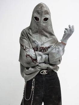 Felpa americana con cappuccio a tema scuro con maschera-Streetwear unico con cappuccio in stile retrò con cerniera Design.