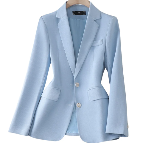 Bayan giyim 2024 ince ofis resmi ceket bir düğme siyah ve mavi blazer uzun kollu hırka ütü kapalı