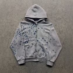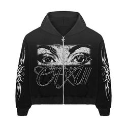 100% Cotton Heavyweight Vintage Street-Style Hoodie with Print, Loose Fit, Metal Zipper, Customizable and OEM Available