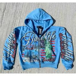 Heavyweight Distressed Vintage Street-Hip-Hop Hoodie - Long-Sleeve, Loose Fit, Customizable Printing & Metal Zipper